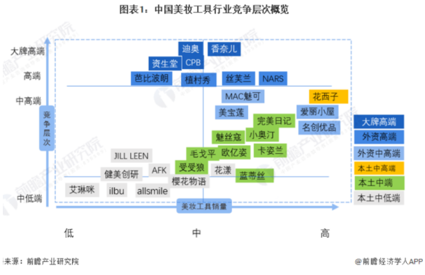 在传统美妆市场,高端市场主要由欧美品牌占据主导市场,其中大牌高端市场基本为欧美日本等品牌垄断。