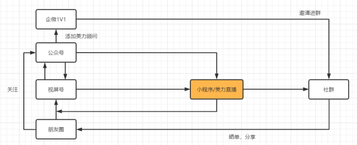 丝芙兰选择将直播日常化,每日19-23点定时开播,让接触丝芙兰的客群培养成用户习惯,每日直播活动主题都不同,保持用户新鲜感。但视频号直播不能仅仅作为私域运营的独立方式,需要注意微信生态的其他组成部分的联动与切合,环环相扣将私域运营的效果最大化。