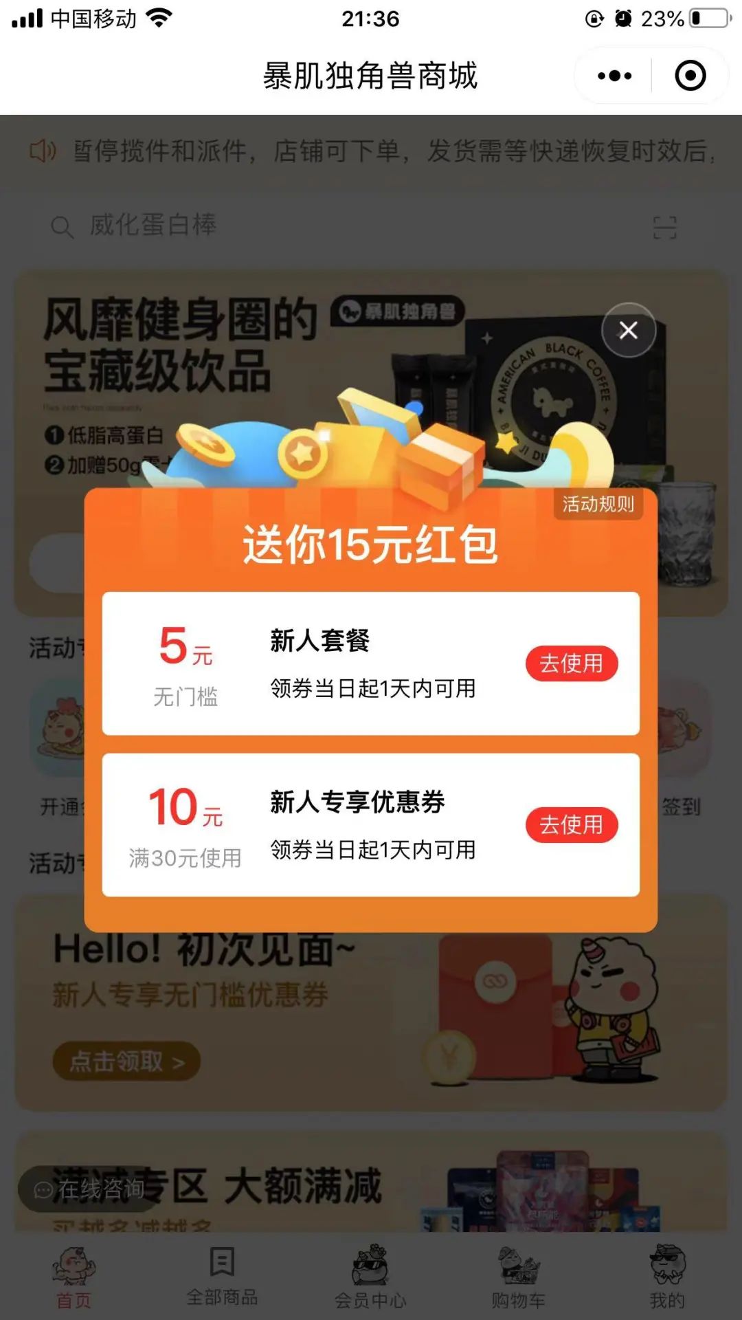 活动群:【暴肌独角兽的活动福利群】、【独角兽618大促15号20:00开启】