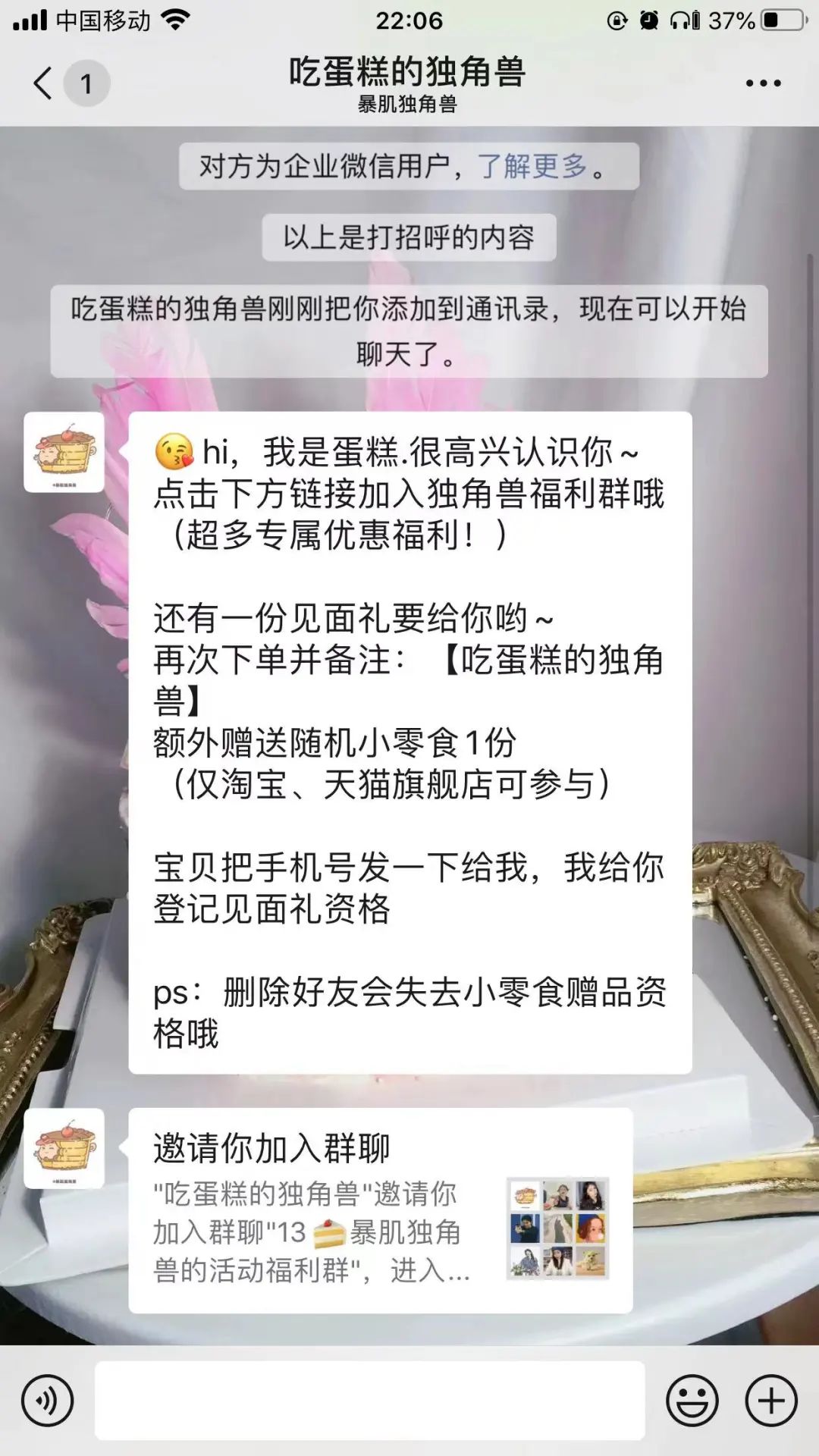 话术拆解:自我介绍+邀请进群+复购福利(备注领零食)+验证手机号