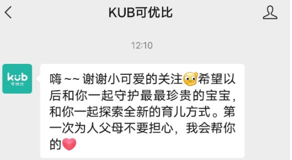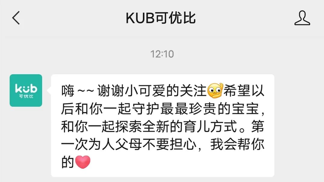 可优比公众号的自动回复目前只有一段文字的自动回复,主要介绍的是品牌理念。