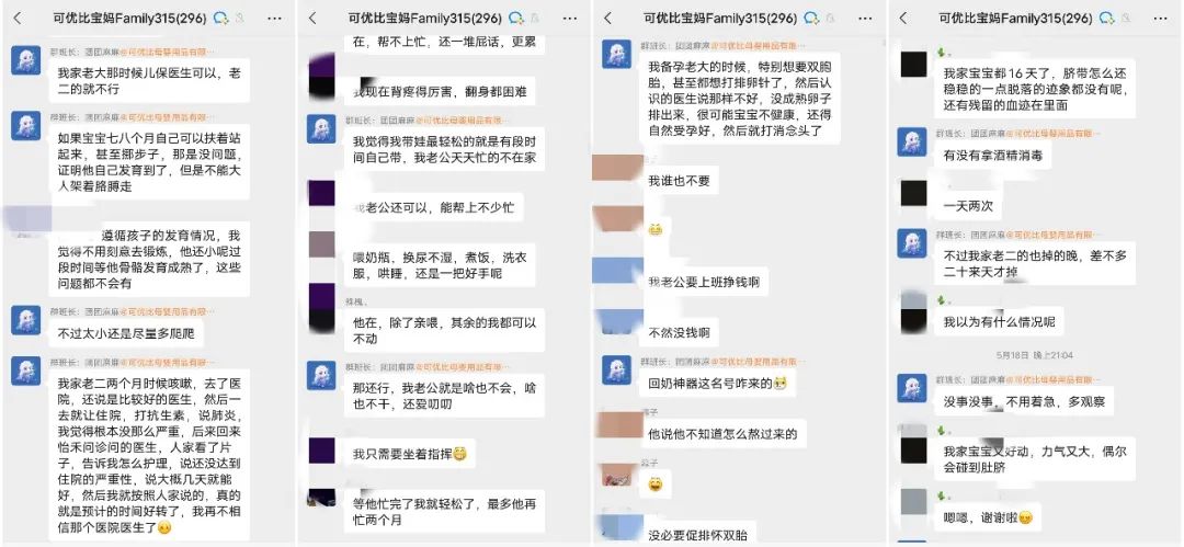 群里基本以育儿话题为中心,什么都聊,从宝宝每天的吃喝拉撒,到家庭、情感、婚姻、婆媳关系等等话题,都能发散开来;