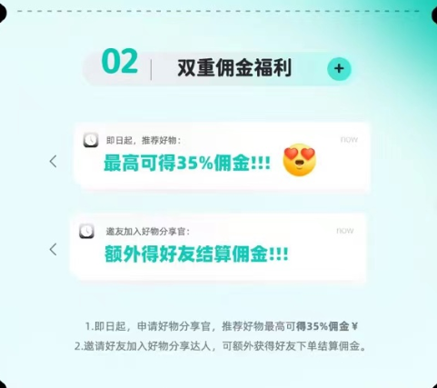 可优比小程序内还开放了分享官招募的入口,为分享官提供双重佣金福利和五大专属权益,激励分享官分销。