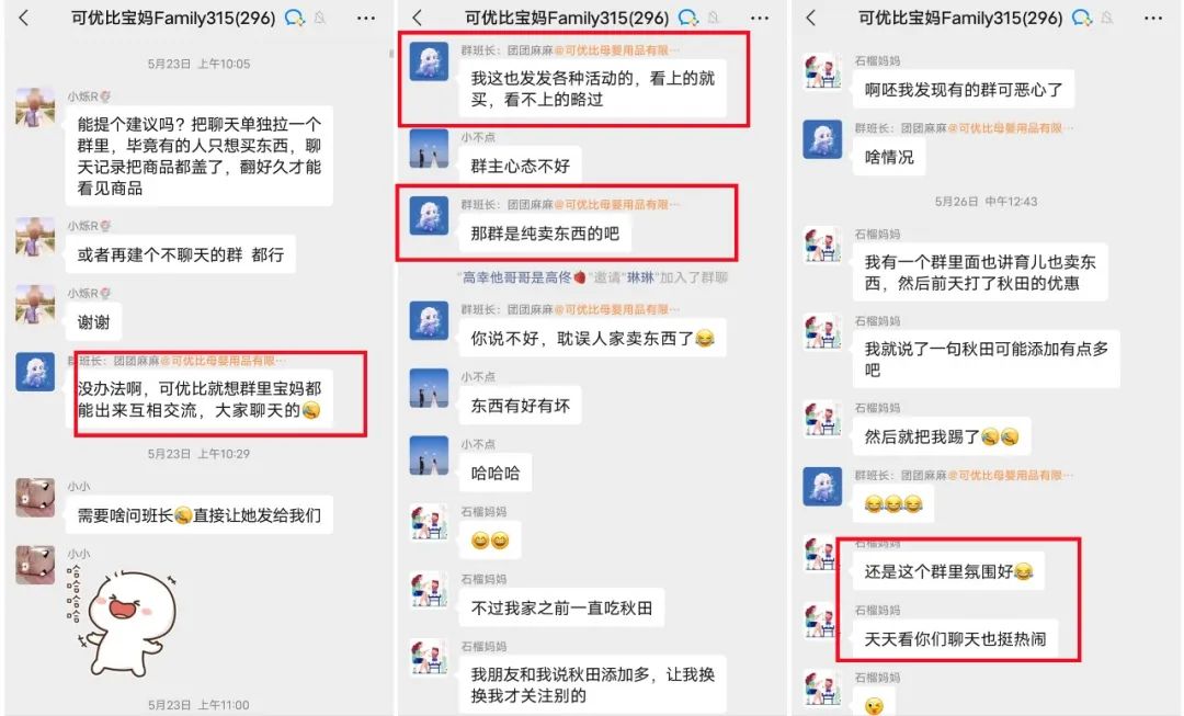 宝妈群体的言论会比较激烈,部分KOC在讨论的时候,基本都是以促进活跃为主,并不会制止和打断对话,反而还会抒发一些自己的真实想法,这些讨论有时候会带来风险。