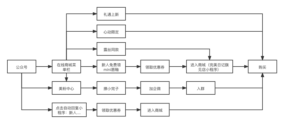 以关注公众号后,可能产生的购买点作为转化策略拆解。