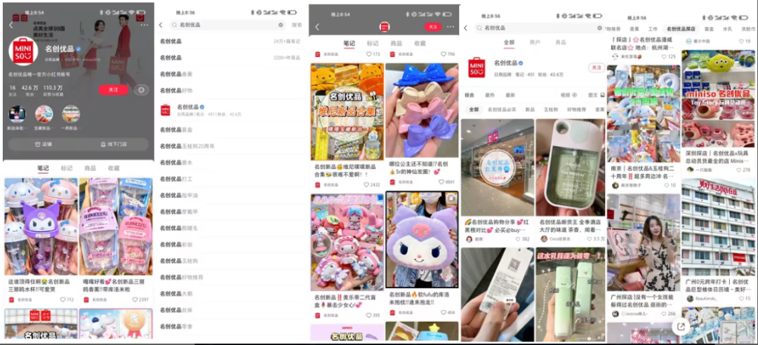 搜索名创优品约有24w+的笔记,主要内容也是好物种草、新品上新,以及探店。