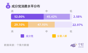 根据《个推大数据:“护肤品成分党”人群洞察》的分析,成分党消费能力强劲,高消费者水平占比高达52.00%。而根据百度指数的数据来看,hfp的粉丝大多分布在一线城市。