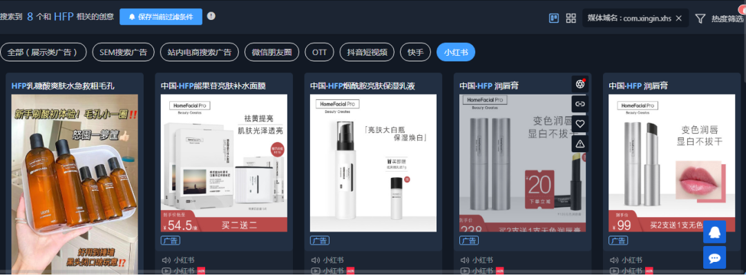 从HFP的产品可以看出,HFP的产品既能够满足对护肤品品类的选择,也能满足对产品功效的选择,而作为产品核心的成分来说,HFP不仅能有大热的烟酰胺等成分,还包括了各种比较小众的成分,能够体现出自身品牌的专业度和研发能力,拉开和同类品牌的距离,既能够满足“成分党”的专业性也能够满足普罗大众的需求。
