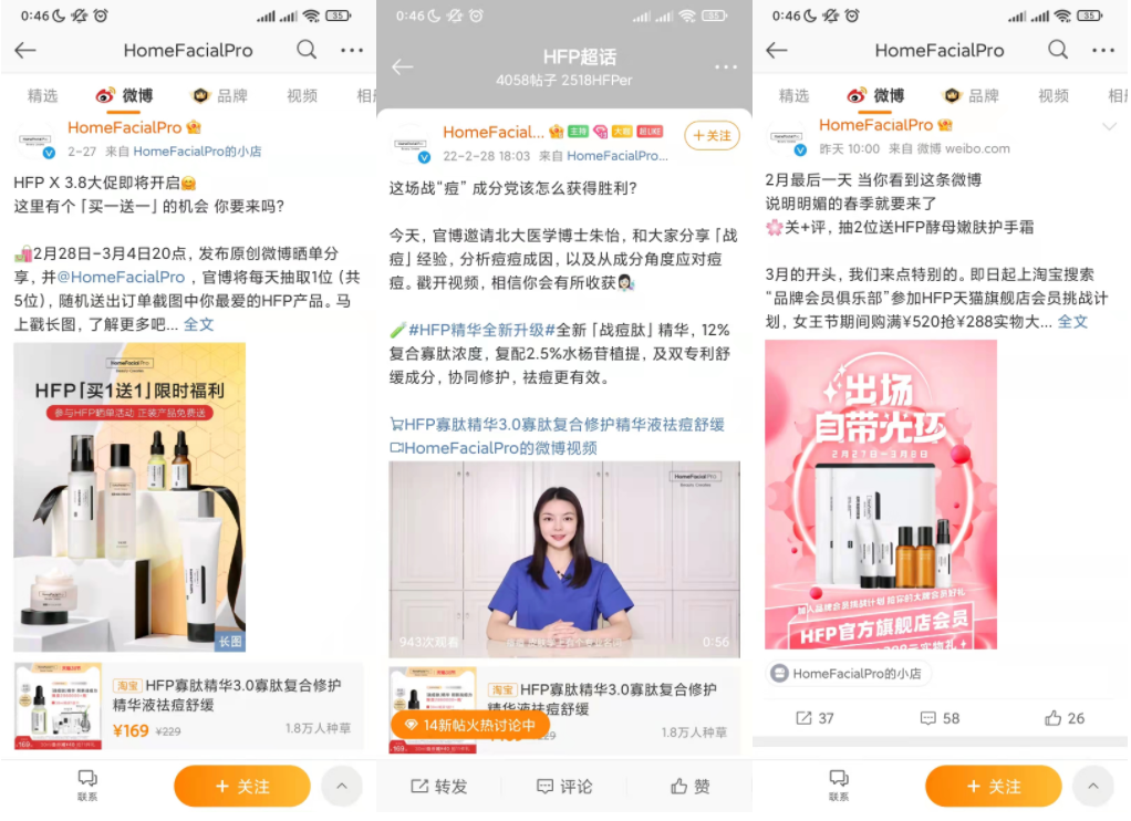 38节活动期间,HFP通过了多种方式来进行营销,比如发售新品,通过增加赠品的方式来吸引用户对新品进行购买,从而能够利用38节的活动流量来发售新品。