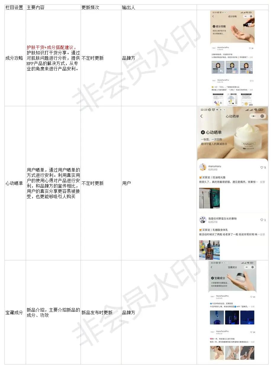 虽然HFP没有社群,但是会通过自有的社区和用户进行互动,社区内会分享护肤知识和产品,能够吸引用户观看。