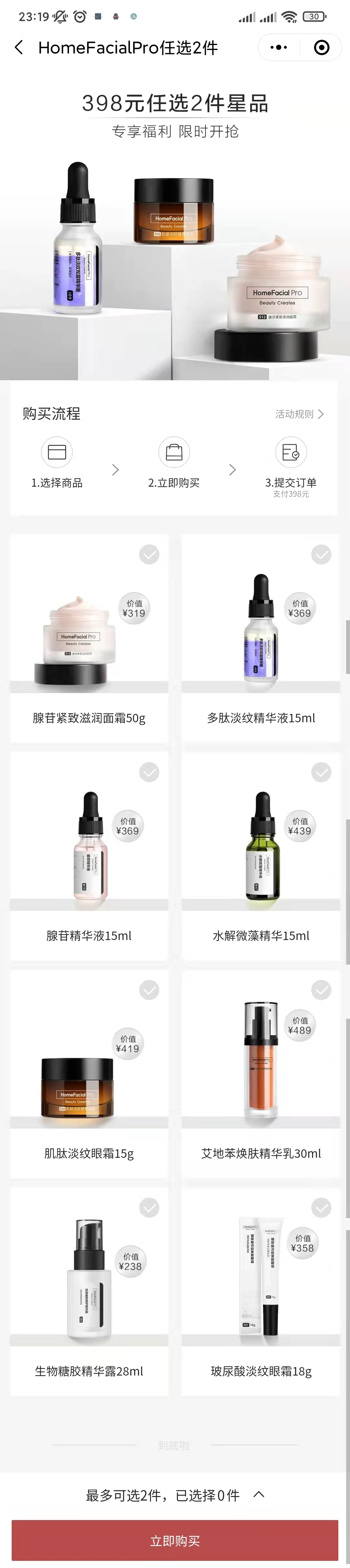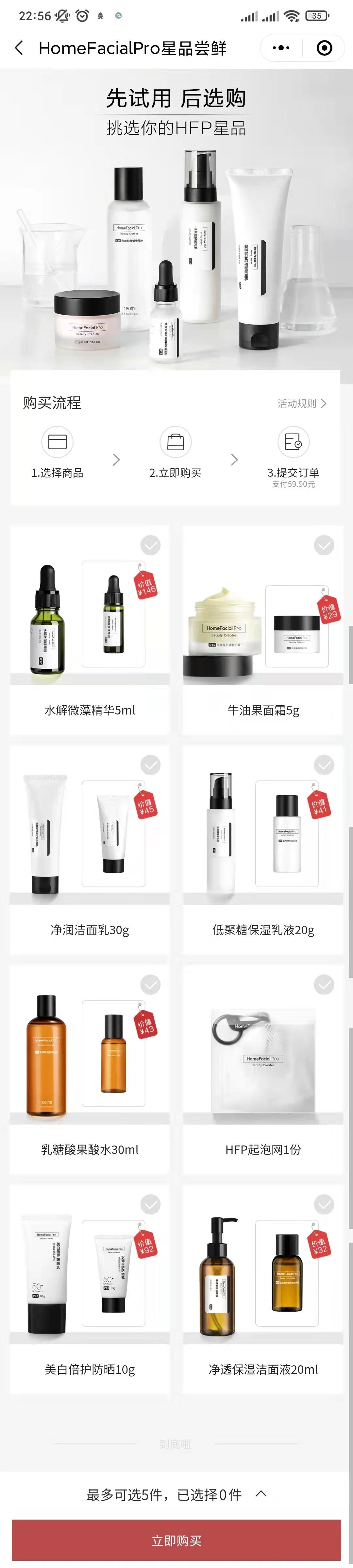 而在星品任选中可以选择用59.9元挑选5种星品。