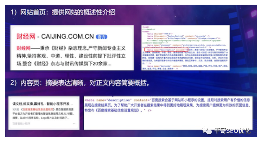 摘要应是对站点核心内容或服务的概述,要求表达清晰,避免出现广告营销信息和其他无关内容。