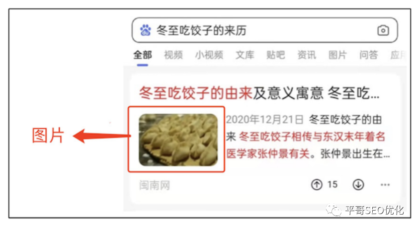 3、图片:有利于体现搜索结果内容的丰富性与优质性,吸引用户点击。