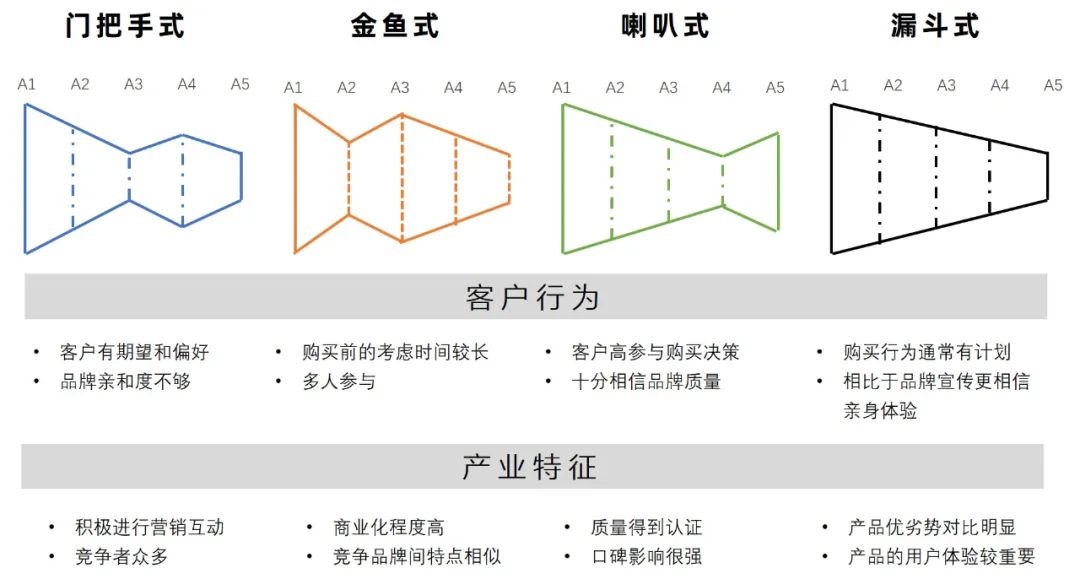以"门把手式"为例,它常见于快消品行业,比如在便利店选购一瓶0糖乌龙茶,消费者只要接收到品牌的广告或促销信息,不太需要太多决策成本(即问询Ask)就可以进行购买,且随着促销活动(第二瓶1元)以及复购习惯的形成(每次口渴就买一瓶)可以让购买达成率的比例远高于100%。