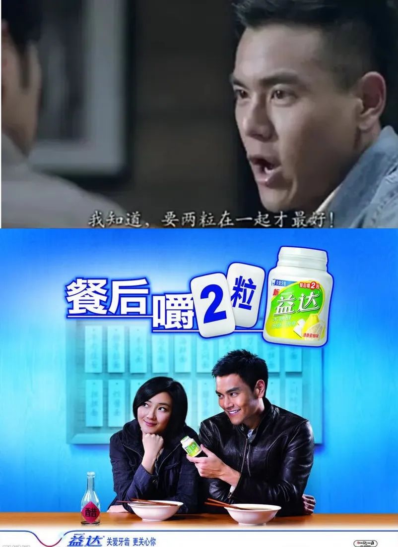 提出[一次嚼2粒]这个要求,其实并没有功能上的支撑,那怎么办呢?不如讲个爱情故事吧,当彭于晏跟桂纶镁暧昧地说着"两粒在一起才叫好"时,有不少消费者潜意识里基于爱情的美好而认同了这种一次吃两粒的使用行为,慢慢就变成了习惯。
