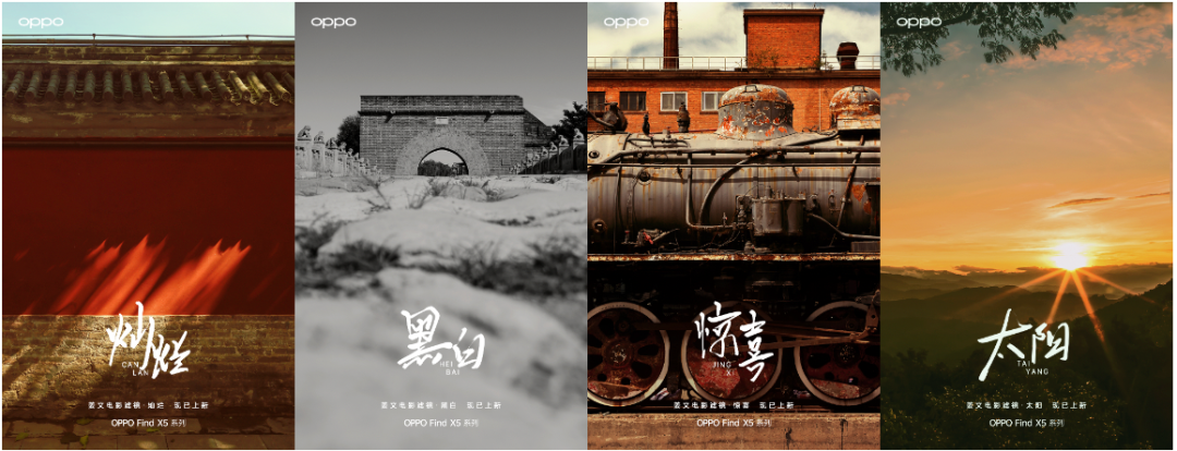 比如说色彩,就曾被OPPO做了一波创意,从姜文导演的《阳光灿烂的日子》《鬼子来了》《让子弹飞》《太阳照常升起》四部电影提取四种颜色,与OPPO手机的滤镜结合,推出“姜文电影滤镜”的概念,并且还请演员齐溪拍了四种滤镜色彩的独角戏。