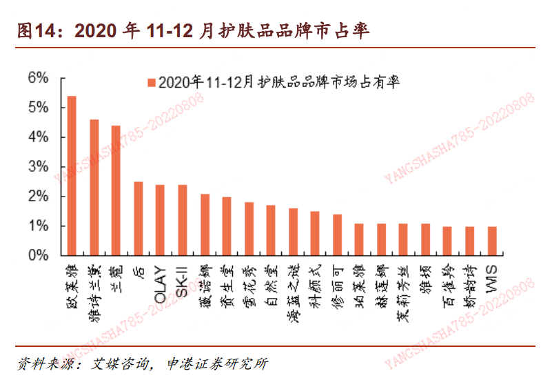 市场竞争:2020年11-12月护肤品品牌占有率属于前三,产品档次属于中高档级别的品牌。