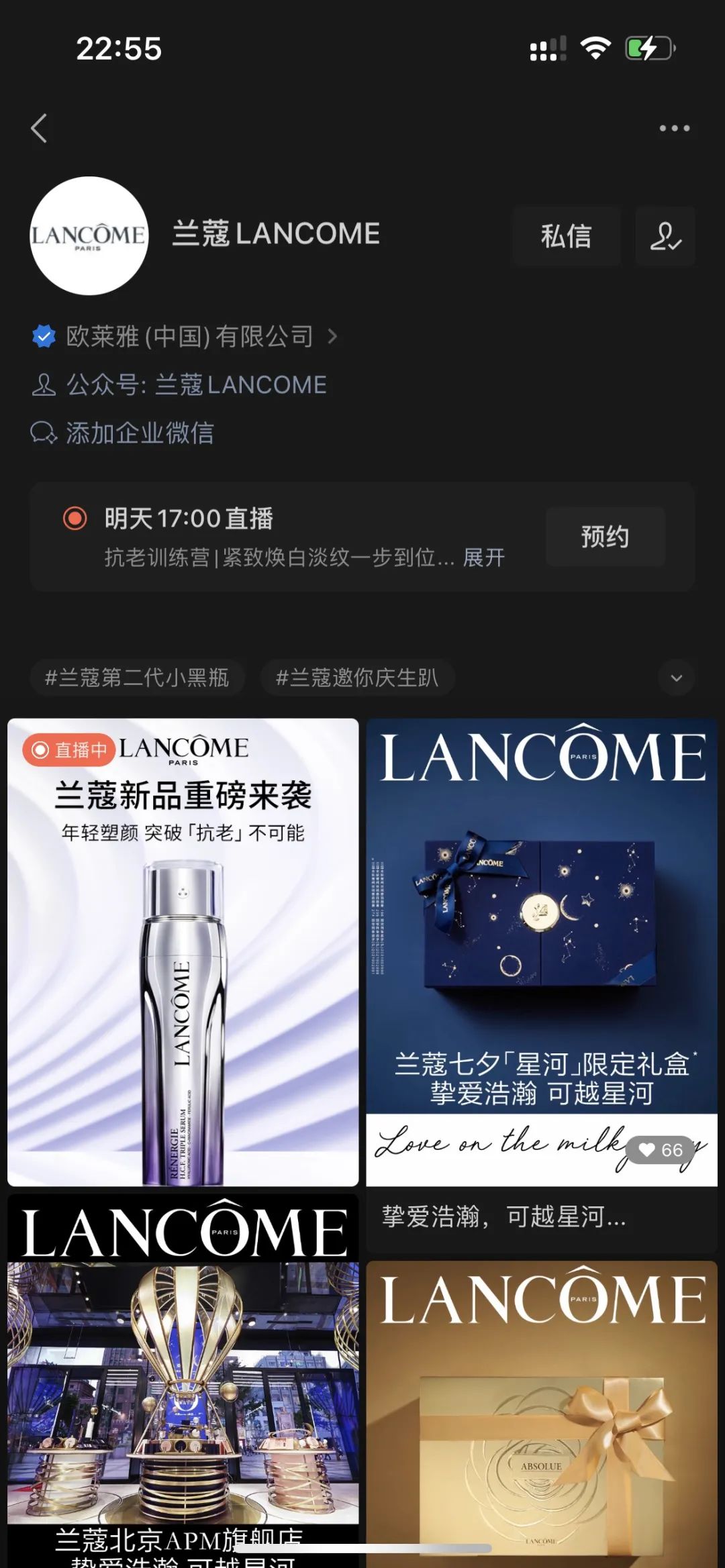 兰蔻在在私域方面的主要触点是:官方小程序,公众号,视频号,企业微信社群、官网(PC端)。