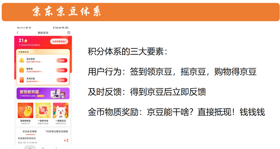 将积分通过活动的形式包装出来,比如京东通过10倍京豆返现包出了京东PLUS会员的主权益之一,这个时候用户就非常认可积分虚拟货币的价值。