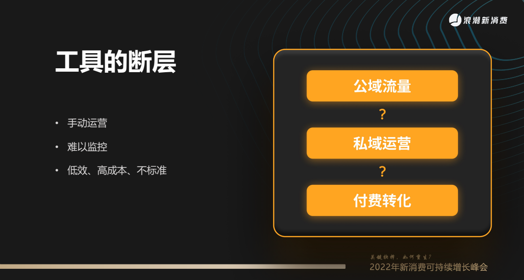首先是工具的断层。我们在和用户交流的过程中发现,很多新消费品牌主要有三个核心战场: