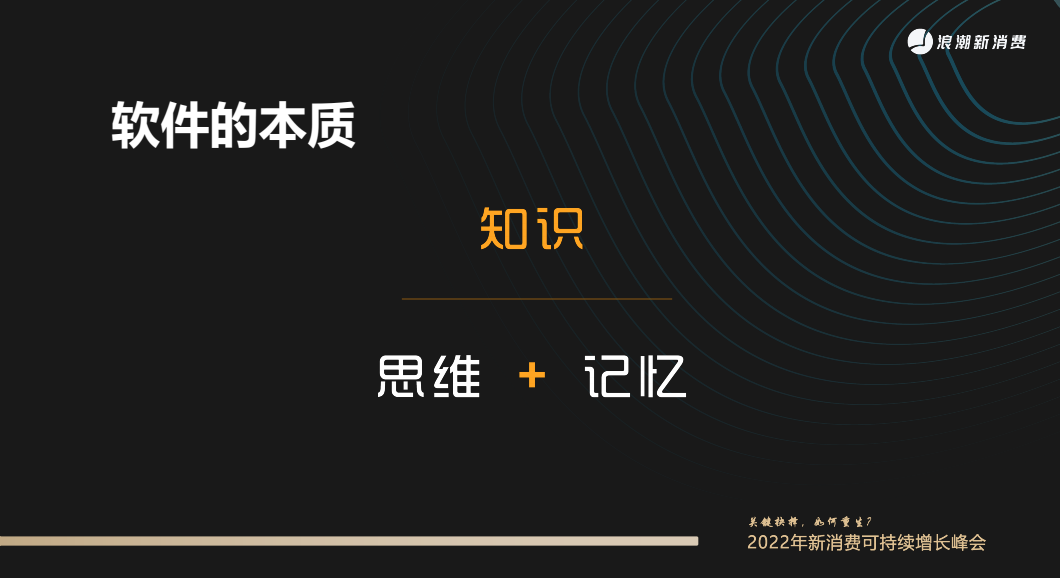 软件的本质是知识,知识包含思维和记忆两部分,记忆是非常典型的在数字化早期做的事情,就是数据化,数据本质上就是把业务变成记忆。