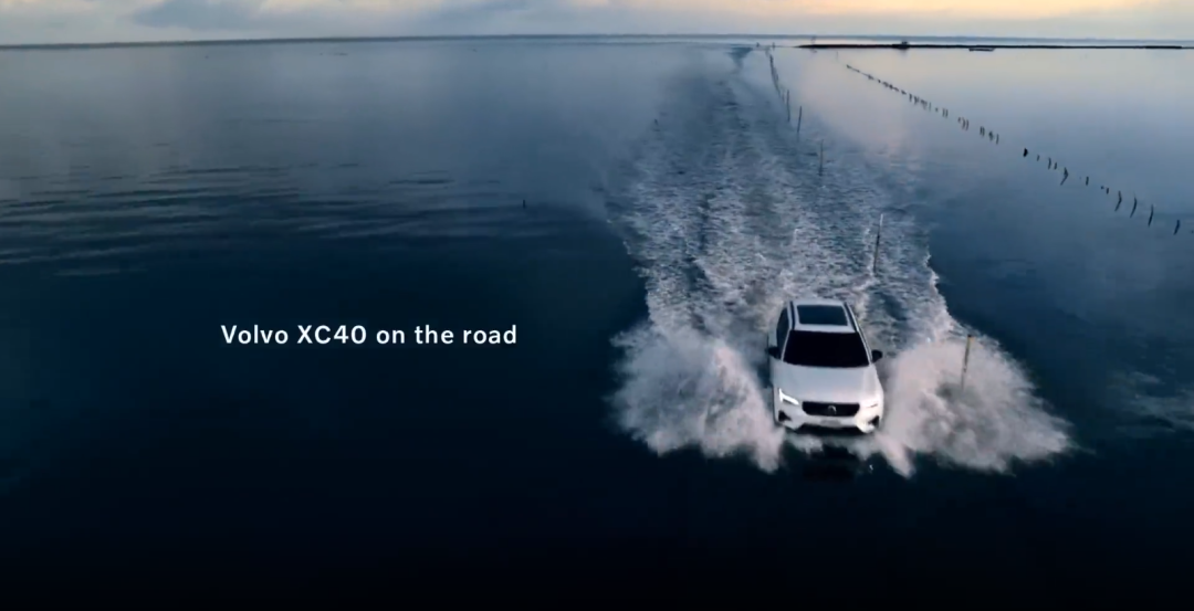 虽然没有刻意去传递产品卖点,但沃尔沃XC40驰骋在公路与水里的镜头,更好地展现了这款车的防水性能。