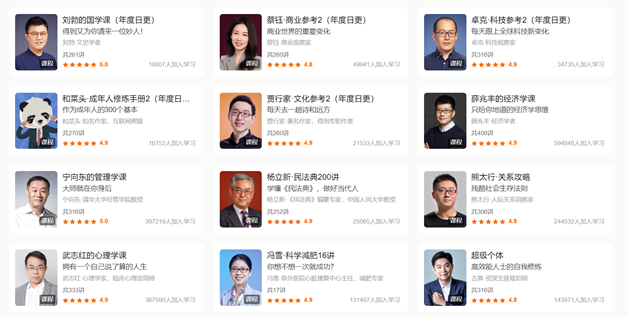 得到部分热门课程。图片来源:得到官网