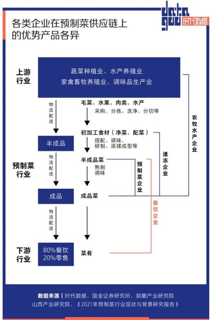 - 中游:半成品加工——预制菜生产企业、食品速冻企业