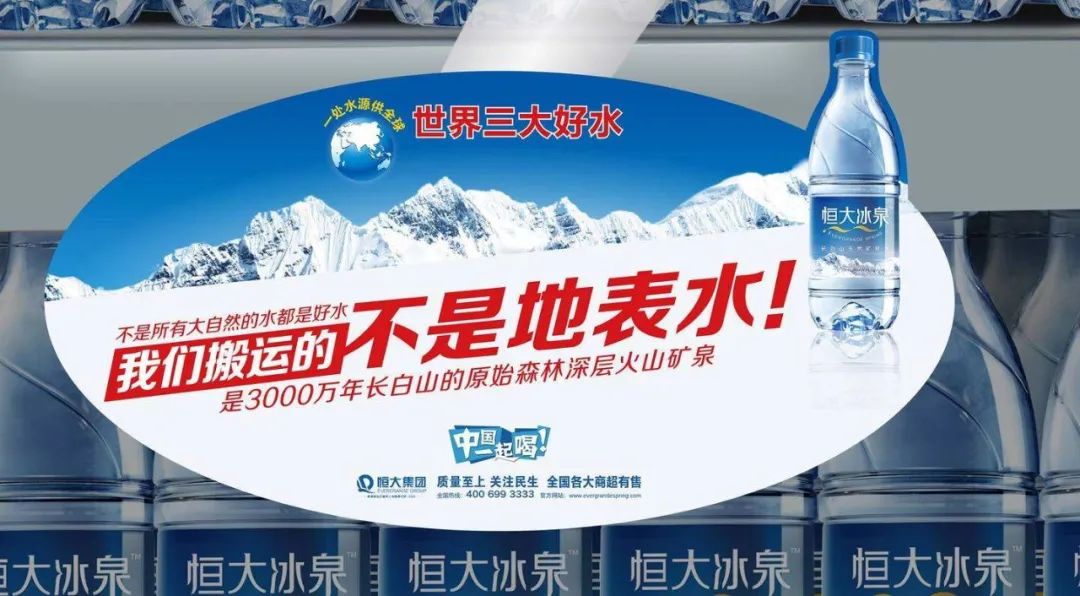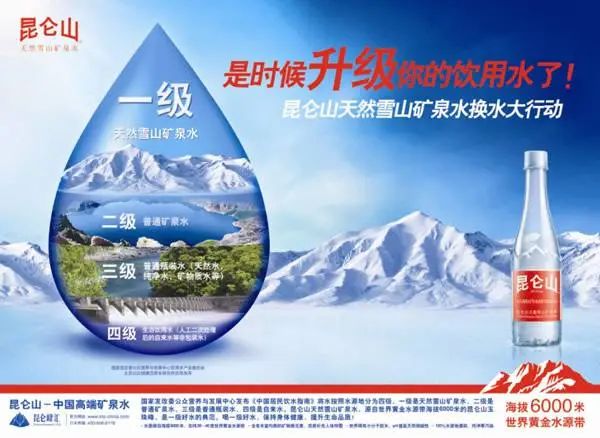 比如2010年昆仑山雪山矿泉水推出,要切高端饮用水市场;14、15年间母婴水悄然兴起,市面上出现了大量品牌,试图将婴幼儿用水市场细分出去。特别是2013年底恒大冰泉推出,打出的广告咄咄逼人:“我们搬运的不是地表水”。