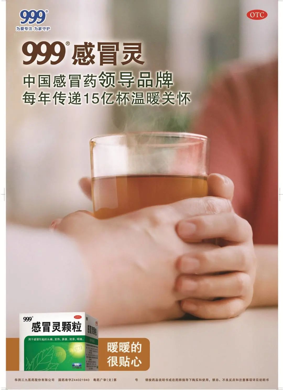 故而2006年起999感冒灵转向诉求“暖暖的,很贴心”,并请周华健代言拍了一系列温情广告片,从家人、父母、朋友等不同角度去拉近品牌与消费者之间的距离。这一系列广告不仅取得了传播的成功,也获得了良好的销售回报。2009年999感冒灵单品销售超过10亿元,连续多年称霸感冒药市场[3]。