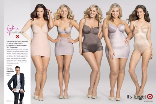 今天新兴的内衣品牌,在美国如American Eagle在强调舒适合体、提供70+的尺码选择,CK在诉求多元审美,Target则表示适合所有女性身材。