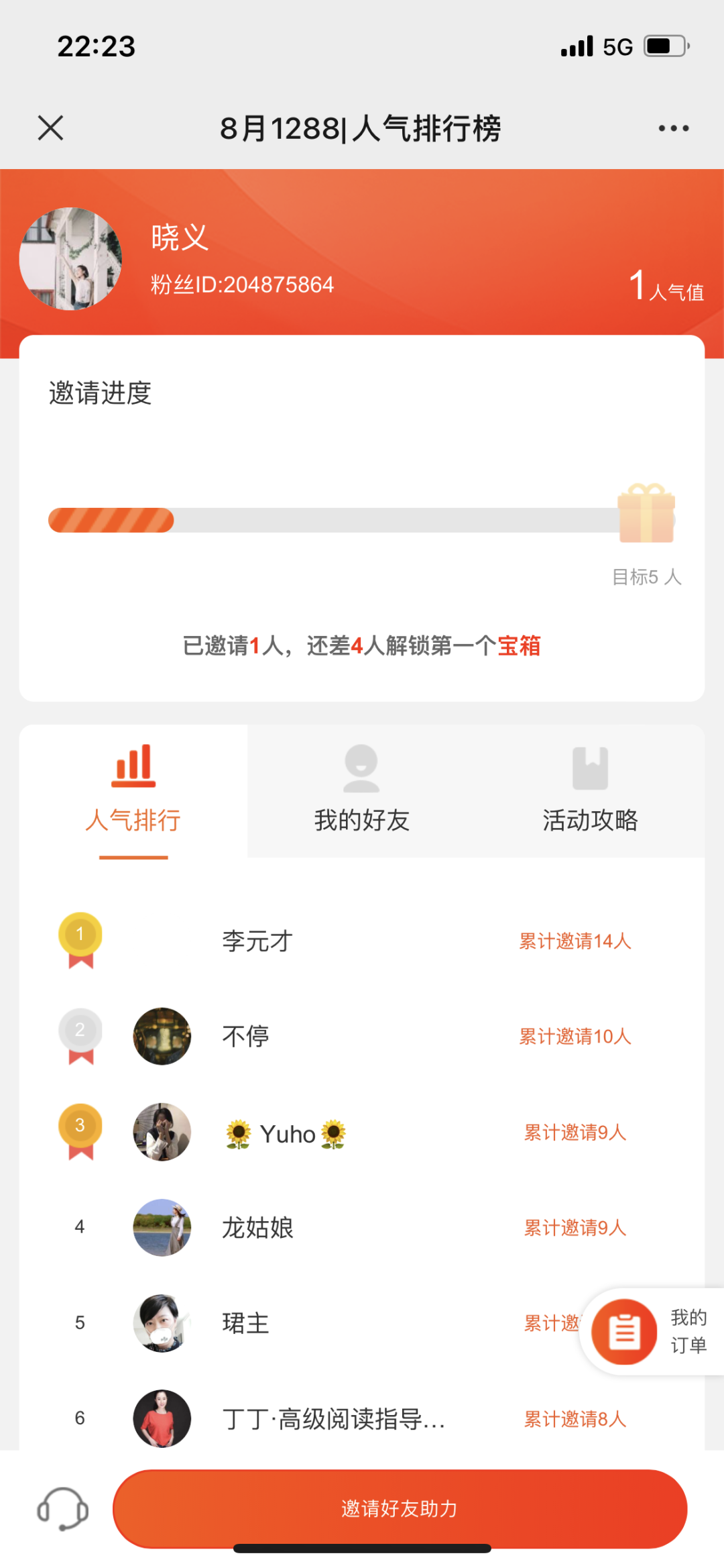 分享好友后会有排行榜和好友助力详情,可以实时查看助力情况