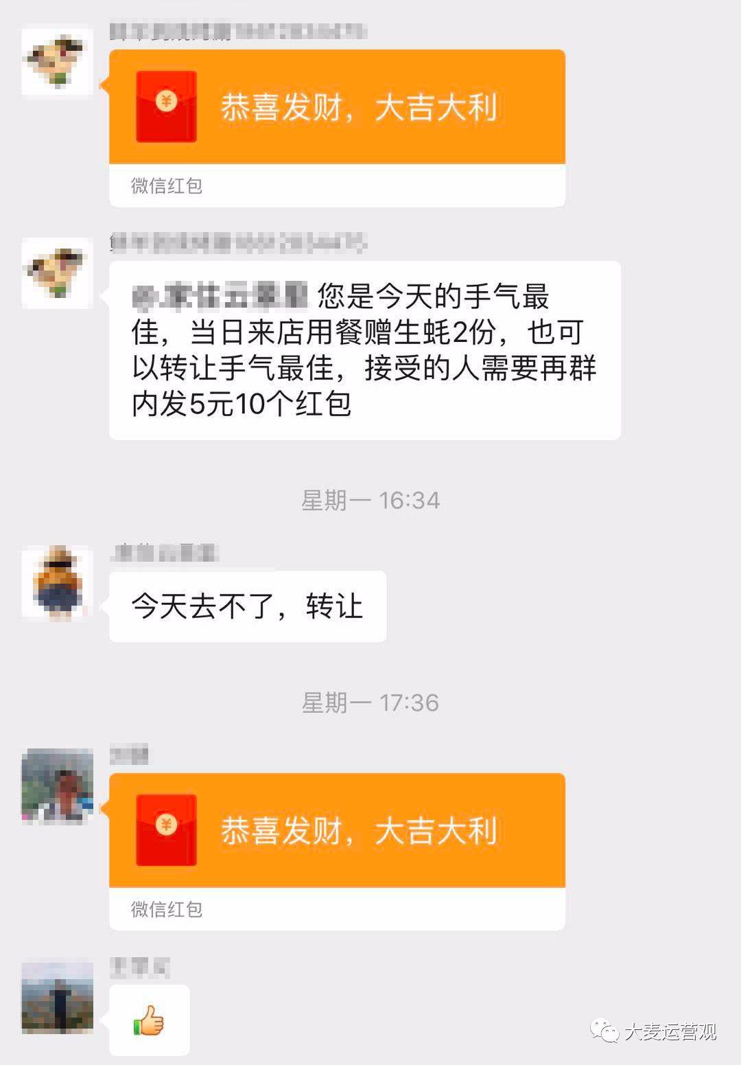 后来我觉得这个群还有点意思,于是就长期潜伏了下来,结果更骚的操作来了。群主开始每天在群里发红包,手气最佳的当天用餐免费赠送生蚝2份。