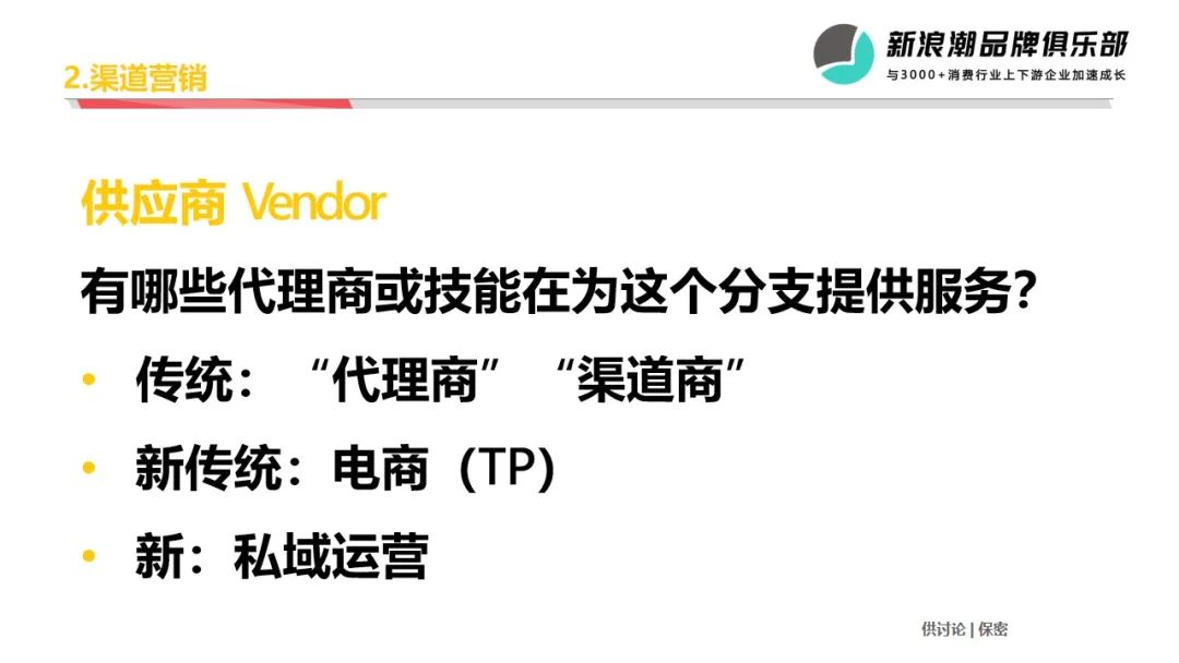 我们再来看看渠道营销的供应商都有哪些?传统的叫代理商或渠道商,很重要的一个点是它压货还是不压货。这决定着对方和你在责任上面如何进行分配,今天有很多的渠道商不压货,他对你来说就只是一个铺货的渠道而已。