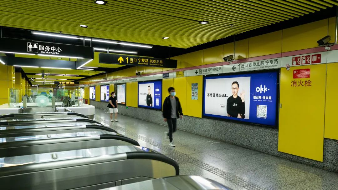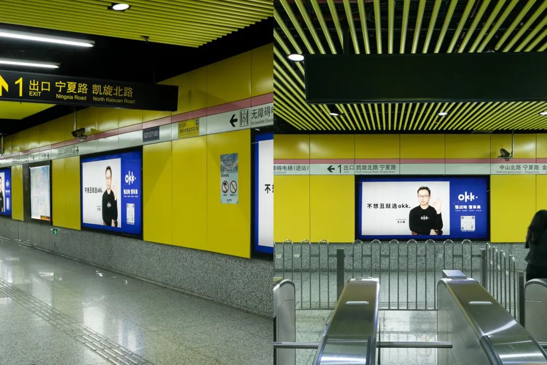 海量投放3天后,okk.海报终于来到了华与华办公室的必经地铁通道,金沙江地铁站。