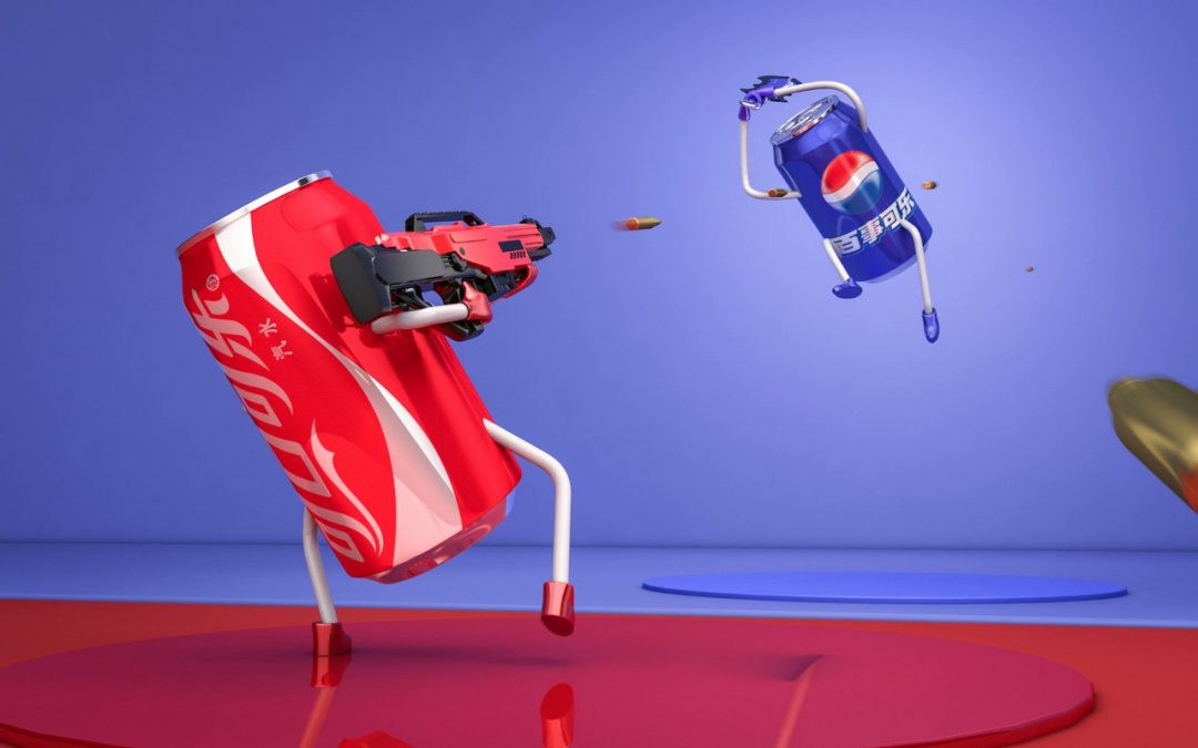 道理很简单,可口可乐的宣传力度、终端曝光度、形象强度都远大于百事可乐。