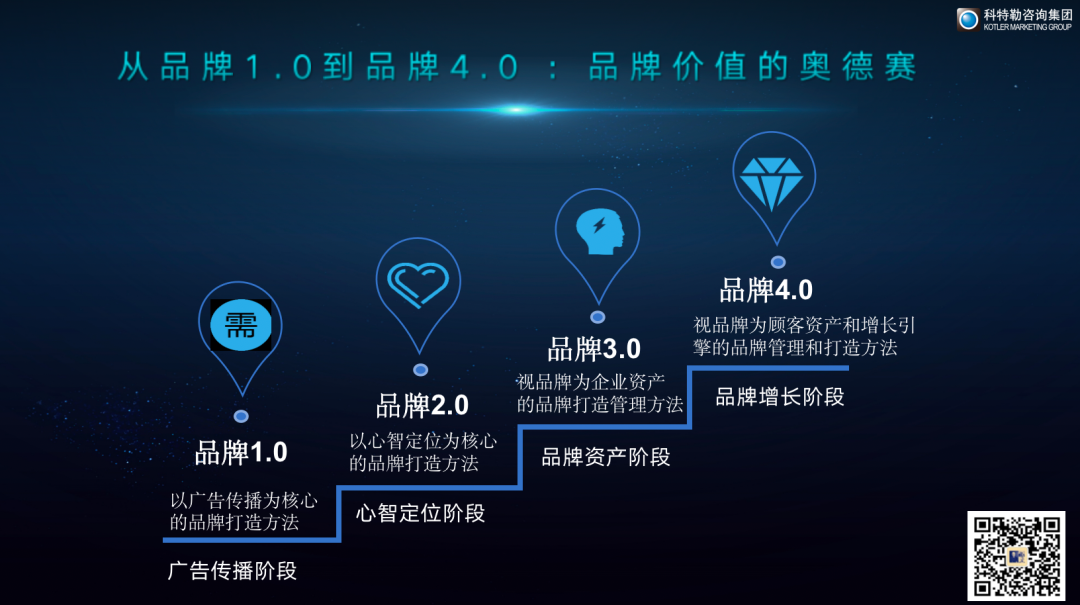那么品牌是怎么一路走到今天的?我把品牌分成品牌1.0到4.0整个品牌价值的“奥德赛”。