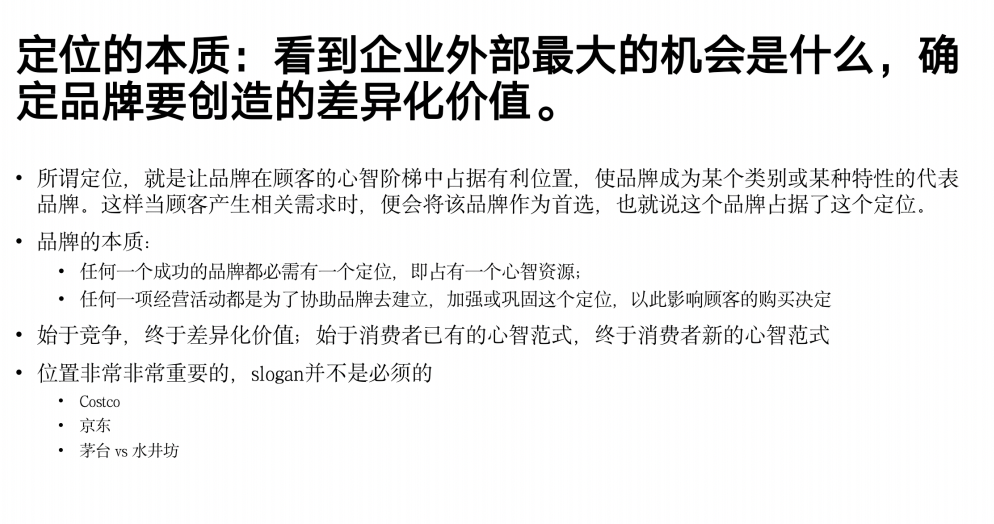 企业的战略定位本质是看到外面最大的机会是什么,确定品牌要创造的差异化价值。所以任何一个品牌都需要定位,但特劳特强调的是消费品牌的差异化是在消费者心智里面。