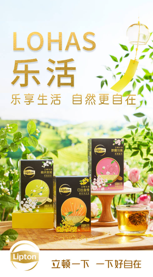 今年7月,立顿提出全新品牌slogan“你好,立顿一下”,乐活系列更是直接点出“立顿一下,一下好自在”的新主张,打造「自在乐活美学家」品牌新人设。