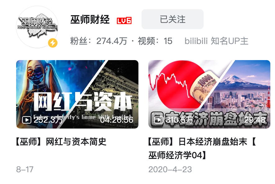 可能过去新的UP主要涨粉,只能磕一个又一个大部头的视频。现在除了像原来这种,死磕大部头的方式,还能发一些比较轻的视频,这些视频集沙成塔来帮助他在一开始低粉的时候涨粉。这个对于UP主来说是增加的选择,这对低粉的UP主也是更友好的。