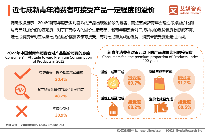 不仅如此,调研还发现,20.4%的新青年消费者对喜欢的产品出现溢价较为包容。