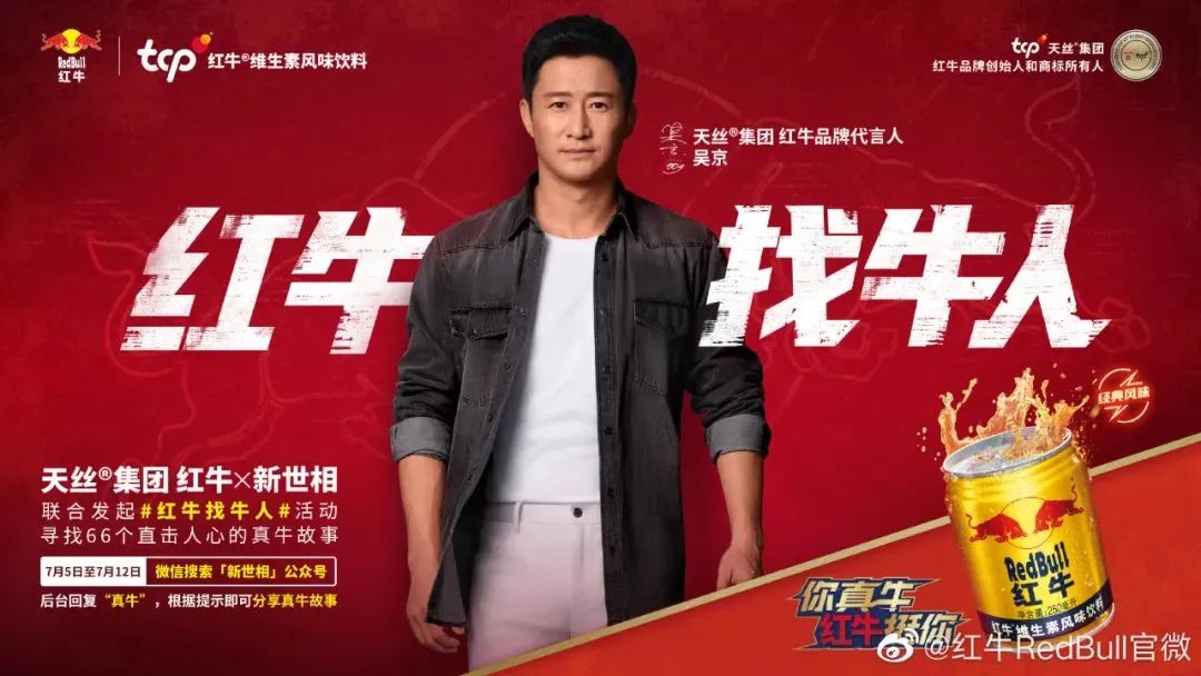 不得不承认自带关注度的“顶流”,在充满不确定性的环境中,依然是一个不错的营销选择,起码为品牌保障曝光ROI。红牛也深谙此道,为了进一步强化品牌“真牛精神”的感召力,邀请硬汉吴京作为品牌代言人,并以自述的形式面向广大消费者发出号召:真牛人,红牛找你!