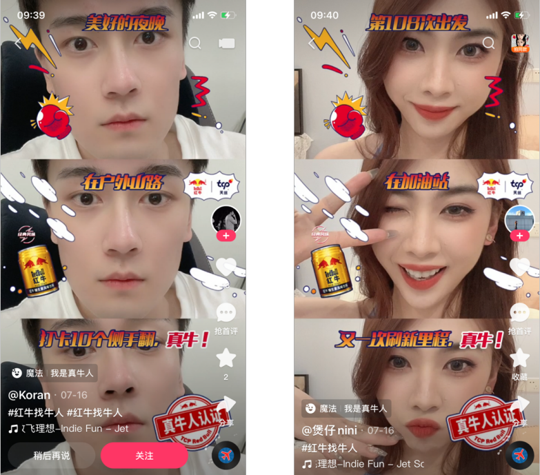 为了进一步与用户建立情感联系,红牛联合快手发起#红牛找牛人#创意挑战赛,并特别定制“我是真牛人”魔法表情,组成不同的“____,真牛”句式,轻松get真牛人认证!