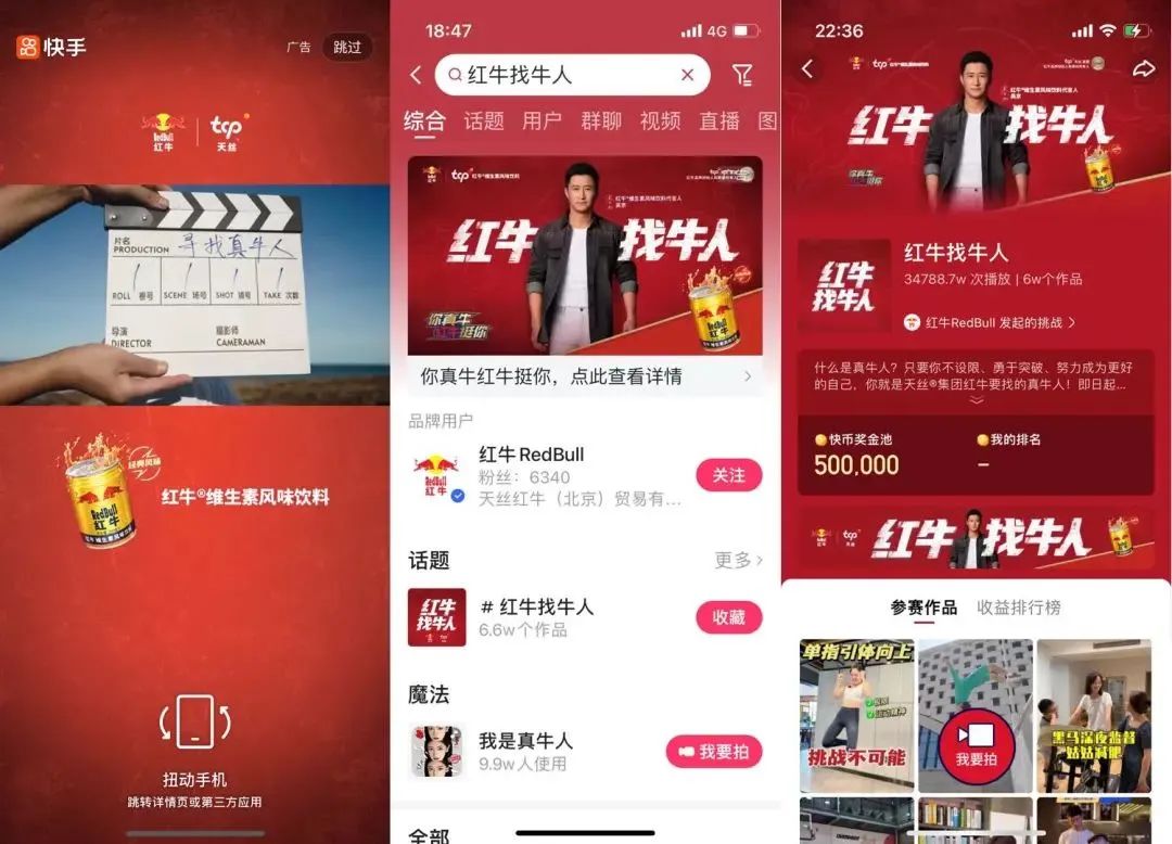 发起#红牛找牛人#快手挑战赛,掀起二次传播分享浪潮