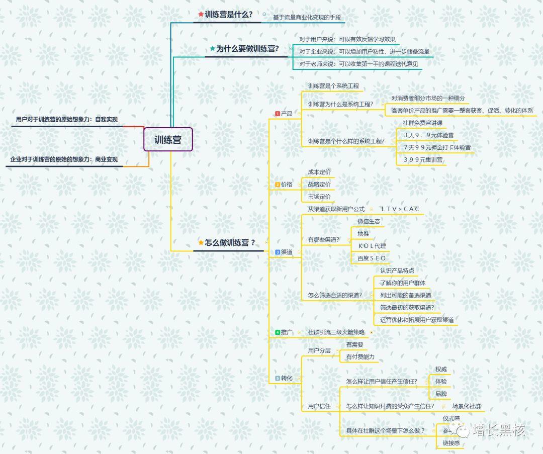 互联网是一门流量生意,低价的获取流量,高价变现流量 。我们说知识付费是把知识包装成商品和服务,实现商业价值割韭菜 ,那么无论是卖课还是训练营都是基于流量商业化变现割韭菜的一把刀的一种手段而已,怎么样通过训练营教学这种方式让这把刀割更多的韭菜,实现更多的商业价值?是企业关于训练营教学最原始的想象力。