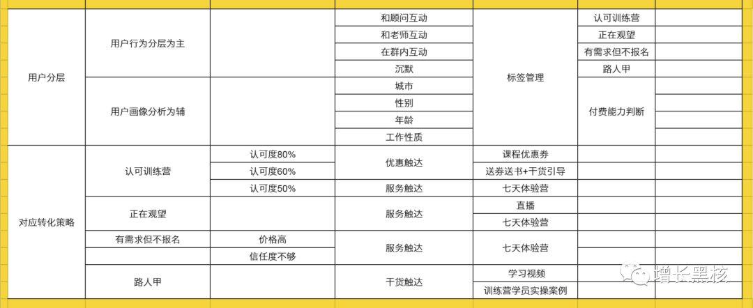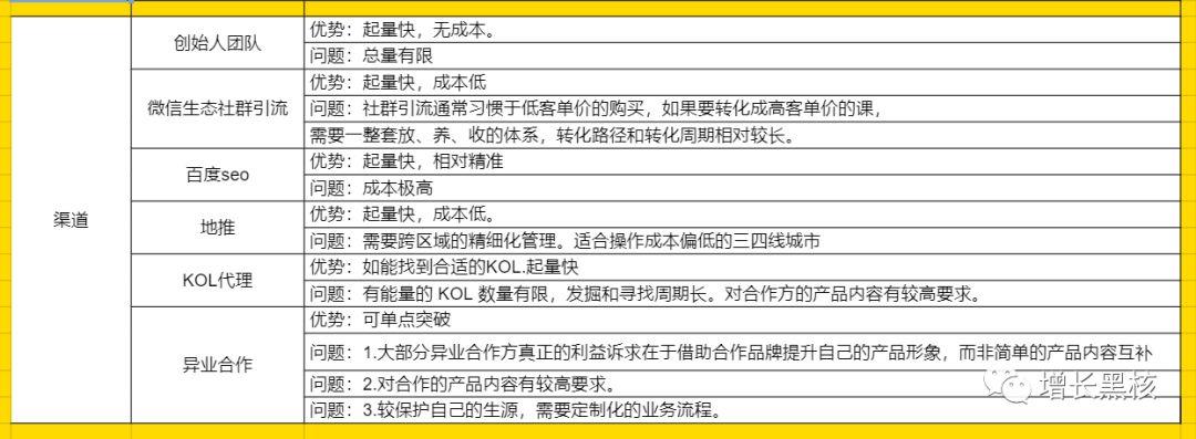 很多在线教育的创业公司,在获取第一批种子客户时,通常采取以上六种策略中的一种或几种组合作为起步流量,根据知识付费型产品的特性,训练营属于能力和素质型课程,用户更关注性价比和过程体验。再加上知识付费型产品的受众特性,用户大部分聚集于微信生态。