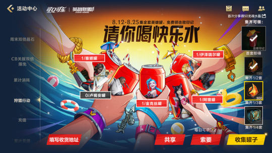 在游戏内,玩家可以通过完成每日任务来获得“虚拟英雄罐”,集齐5款不同的虚拟罐就能得到“可口可乐联名击败印记”、龙魂水晶等道具,还有机会获得官方送出的限量版联名可乐。