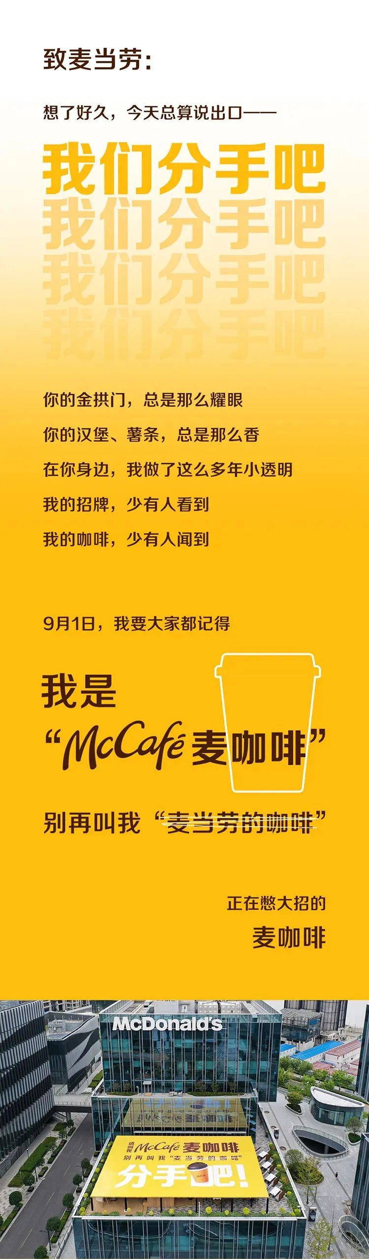 无论是品牌独立,还是全新品类,都是为了面对越来越激烈竞争,而这一出“分手”的好戏,正是举重若轻的麦当劳和麦咖啡,在品牌人格化上的再次成功。