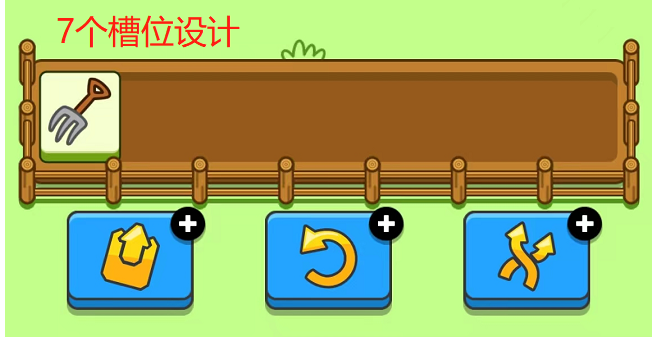 槽位最多可放7个道具,意味着用户最多只有7步考虑。如果7步以内,槽位里的道具凑齐3个即可消除掉,反之槽位满7格则游戏失败。