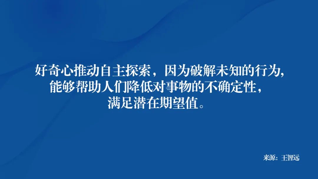 因此,好奇心推动自主探索,因为破解未知的行为能够帮助人们降低对事物的不确定性(Uncertainty),满足潜在的期望值(Expected Value)(Kobsyshi et al., 2019)。